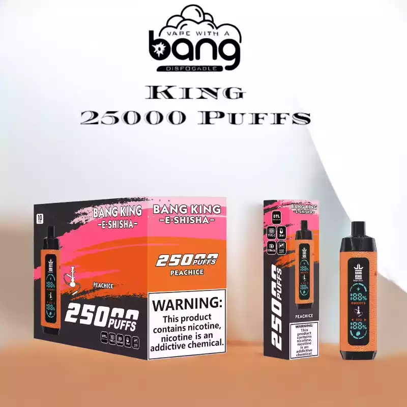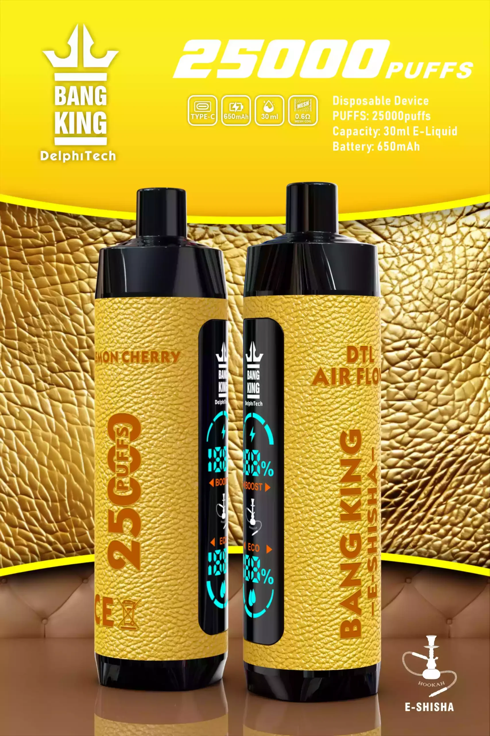 The Bang King 25000 Puffs Disposable Vape, encased in a sleek leather cover, is designed for those who demand both style and performance. With up to 25,000 puffs, this device ensures an extended and consistent vaping experience, perfect for those seeking long-lasting satisfaction without compromising quality.